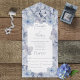 This design features large scale periwinkle blue hydrangea blooms surrounding a white text box. Personalised All-In-One invitations are a unique combination of both a beautifully printed custom invitation with an easy to tear off perforated RSVP postcard. And they are so easy to use! You simply fold, then seal the back flap with the three included clear stickers, and mail. And when your guests receive your custom invite, they just tear the perforated RSVP Card off and drop it back in the mail to you!