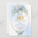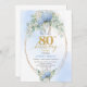 Modern Blue Hydrangea Gold Frame 80th Birthday Invitation