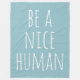 A simple, modern minimal typography kindness design with the phrase - Be a Nice Human - in cute handwriting on a light blue background. Note - background colour can easily be changed when you click customise.