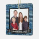 Beautiful and elegant blue marble print background customised with your family photo. Christmas Ornament personalised with your family portrait, name or headline. Great ornament gift idea for anyone!