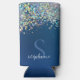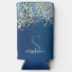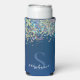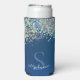 Modern Blue Monogram Holographic Glitter Custom Seltzer Can Cooler