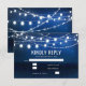 Elegant blue night and silver string lights wedding rsvp card. The text can be changed using right the "Details" menu. To fit everything to your needs please click the "Customise" button and you can text style, backround and paper colour change. Other colours are available. You can change the paper type on the right side of the "Compare Papers" menu. Please contact me if you need help, for matching items or you have special wishes.