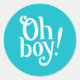 Modern Blue Oh Boy! Classic Round Sticker