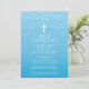 Modern Blue Ombre Garland Cross Boy Communion Invitation