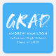 Seal your graduation envelopes and graduation party favors with personalized graduation stickers! The graduation stickers feature "Grad" in white lettering with white paint splatters and a blue background or color of your choice. Personalize the stickers by adding the graduate's name, school name, and graduation year.