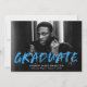 Announce your graduation with our Modern Paint Splatter photo graduation announcements. The design features the graduate's horizontal photo with "Graduate" in bright blue lettering with white paint splatters. Personalize the front of the creative graduation announcements by adding the graduate's name, school name, and graduation year. The back of the announcement features a blue background with white paint splatters. The design is perfect to use for both high school and college graduates.