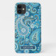 Modern Blue Paisley Pattern Personalised Name Case-Mate iPhone Case