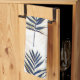 Modern Blue Palm Leaves Gold Strokes White Design Tea Towel