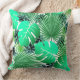 Decorative pillow in blue, teal and green colours. This design is a stunning summer garden pattern with cute and modern palm leaves.