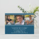 Announce your high school or college graduate in style with a three-photo graduation card with stripe details and modern sans serif invitation wording. Classic blue and white design colours. Customise to add three photos and your graduation announcement and party invitation details.