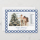 Custom blue and white plaid photo holiday card featuring a blue and white chequered pattern. Easily personalise this blue gingham photo holiday card with your photo and family name.