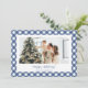 Modern Blue Plaid Calligraphy Photo Holiday Card