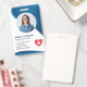 Create a professional and stylish ID badge for registered nurses. This customisable template features a modern blue design, perfect for hospitals, clinics, and healthcare facilities. Easily personalise with your photo, name, title (Registered Nurse RN), ID number, location, and more. Add a barcode to the back for enhanced security. The clean layout ensures all vital information is clearly displayed. This template is also easily adaptable for other healthcare professionals. Simply adjust the text fields to reflect your specific role and information.