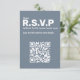Elevate your wedding response suite with this sleek QR code RSVP insert, designed in a refined pastel slate blue for a cool, modern impression. The card features bold, large typography for clarity and sophistication, enhanced by a minimalist layout and smart use of space. Its elegant r.s.v.p enclosure style complements a range of contemporary suites, while the oversized, clean lettering provides standout legibility and visual balance.