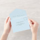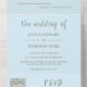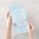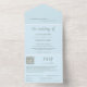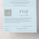 Customisable modern sea glass blue and sage green QR Code All In One Invitation. Includes RSVP with a scannable QR code that you can link to your wedding website. Generate your own unique QR code via the "personalise this template" feature on the product page. Add your URL to the area provided and a brand new QR code will generate on the design just for you.