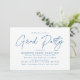 Celebrate your milestone with these fun and modern graduation party invitations featuring "Grad Party" in a trendy blue script font. Your graduation party details are displayed below in a clean, easy-to-read layout. The back of the invite showcases a stylish blue and white dotted geometric pattern for a playful touch. Perfect for both high school and college graduates, these simple yet chic graduation invitations set the tone for a memorable celebration.