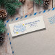 Send holiday greetings with a classic touch! This modern blue script holiday label features blue, bold font styles with the option to customise with a personal message.