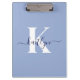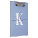 This simple, elegant light blue 12.5 x 9 clipboard with your first name in a trendy script font in navy blue typed over your first initial in a modern cap font in white is perfect for you. It's stylish and trendy and yet very classic. It will come in handy in so many situations. Perfect for work, home, school.