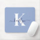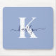 This simple, elegant light blue mousepad with your first name in a trendy script font in navy blue typed over your first initial in a modern cap font in white is perfect for your office/desk. It's stylish and trendy and yet very classic.
