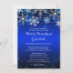 Formal winter wonderland themed gala ball fundraiser invitations. Featuring white snowflakes on a black and royal blue bokeh background.