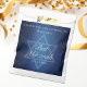 Beautiful deep shades of dark blue create a texture like water on these custom formal Bat Mitzvah party favour bags. Elegant white minimalist script with your daughter's name on the subtle Star of David for a Jewish celebration.