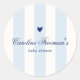 Modern Blue Stripe Heart Valentine Baby Shower Classic Round Sticker