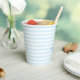 Custom, personalised, elegant dark blue typography script, modern cool chic stylish geometric trendy light blue white stripes pattern background, classy, monogrammed, FDA approved for food contact and safety, ideal for cold and warm beverages alike, paper cups perfect for birthday parties, summer picnics, and events. Simply type in your name / kids name / family name / company name, to customise. Makes a great gift for birthday, graduation, fathers day, christmas, holidays, new years, wedding, marriage anniversary, valentines day, and more, for your loved ones, mum, dad, wife, husband, girlfriend, boyfriend, grandpa, grandma, friends and family.