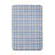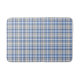 This bath mat features a colourful tartan (plaid) pattern in white, blue and brownish grey (taupe).