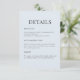 Organize your wedding with the Metropolitan Emerald details card. Designed to hold all your essential information—accommodations, directions, and website URLs—while adding a stylish "confetti" texture to your invitation suite. Designed in clean, minimalist layout with Glacial Ice Blue for maximum readability and our signature Chrome Dust Terrazzo pattern on the back to create playful yet sophisticated vibe, perfect for a modern city wedding.