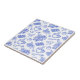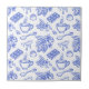Modern Blue Toile Cacao and Chocolate Pattern Ceramic Tile