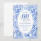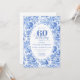 Modern Blue Toile Roses 60th Birthday Invite Digit