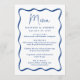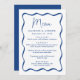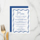 Add a vintage touch to your engagement party, rehearsal dinner, or wedding reception with this Modern Blue Wavy Frame wedding menu. The design displays the couple's names, wedding date, and menu options in bold blue lettering surrounded by a blue wavy frame border against a white background. The retro wedding menu coordinates with our Modern Wavy Frame wedding collection.