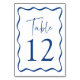 Add a stylish touch to your wedding celebration with these Modern Wavy Frame wedding table cards! The retro design displays "Table" in a handwritten blue script with the table number shown below. A blue wavy border surrounds the table number contrasting with a white background. The design repeats on the back. To order the table cards: Add each number to your cart individually and check out when you're finished. Do not order by quantity or you will receive multiples of the same number.