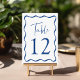 Modern Blue Wavy Frame Wedding Table Number