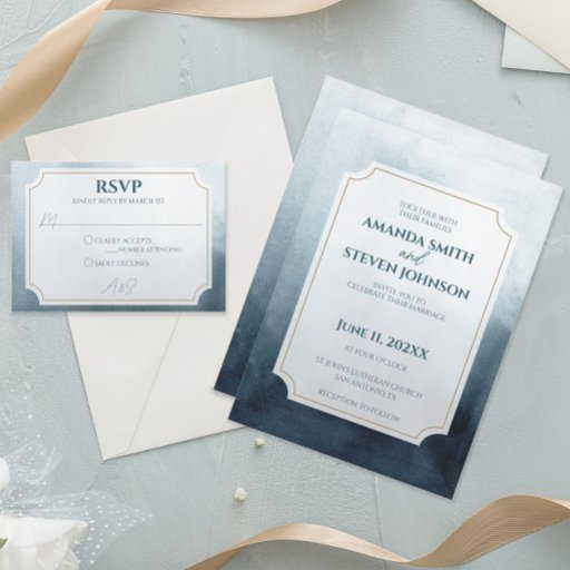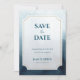 A modern blue Save the Date card with an abstract but classy feel.
