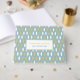 Simple and elegant, this personalised guestbook is the perfect way to have friends and family attending your son's bar mitzvah to sign as a keepsake. The design features a modern blue, white, and gold teardrop pattern design on the front and back. The spine features a customisable text area as well.