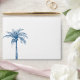 Customise this elegant design featuring modern script typography with your name and return address on the back flap. An artistic blue palm tree adorns the front while the inside of the envelope features a white palm tree pattern over a blue background. If you need help or matching items, please contact me.