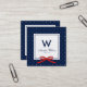 Modern Blue White Polka Dot Red Ribbon Monogram Square Business Card