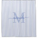 Modern Blue & White Stripes Monogram Name Shower Curtain