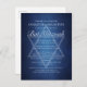 Beautiful deep shades of dark blue create a texture like water on this formal Bat Mitzvah postcard invitation. Elegant white minimalist script with your ceremony and reception details on a gorgeous gradient underneath the subtle Star of David to celebrate your Jewish daughter's coming of age.