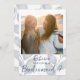 This is a modern and elegant "Will You Be My Bridesmaid" proposal card template. The design features a simple blue leaf painted in watercolor on a white background. There is space on the back of this card for a special message, or you could delete and add a hand written note.