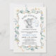 Modern Blue Yellow Floral Elephant Baby Shower Invitation