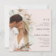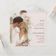 This beautiful blush pink wedding invitation features a front boho botanical framed arch shape photo and simple monogram, and the back is one full bleed photo.