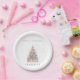 Modern Blush Christmas Tree Personalized Holiday Paper Plate