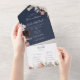 Modern Blush Floral Navy and Marble Seal And Send All In One Invitation
