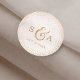 Glamour faux glitter rose gold hand lettering calligraphy monogram design and gold dots confetti on pastel blush watercolor background, pretty shimmer faux metallic rose gold glitter effect, modern, chic, elegant and classy, perfect for vintage wedding or spring wedding. Custom your own monogrammed sticker add a personal touch to your wedding!