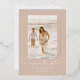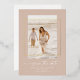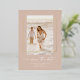 A modern Save The Date design featuring a thin trendy calligraphy script including a Real gold foil frame against your awesome picture, against a blush background. Easily customise your personal information along with your photos on the front and back of the card.
