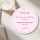 Modern blush pink and red minimalist wedding classic round sticker