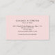 Blush pink business card with black typography and elegant script.