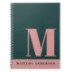 Modern Blush Pink, Dark Green Monogram custom Notebook